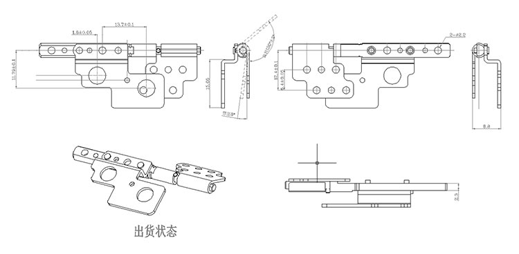 技術(shù)要求: 1.產(chǎn)品扭力要求:3.5-4.3kgf-cm 2.旋轉(zhuǎn)角度:旋轉(zhuǎn)-8~130度,-8度自鎖,出貨角度130度 3.產(chǎn)品壽命要求15000次,衰減率不大于20% 4.固定架需與轉(zhuǎn)軸固定牢固,不能松脫現(xiàn)象 5.所有加工工藝都需符合環(huán)保要求 6.帶 號尺寸為重點管制