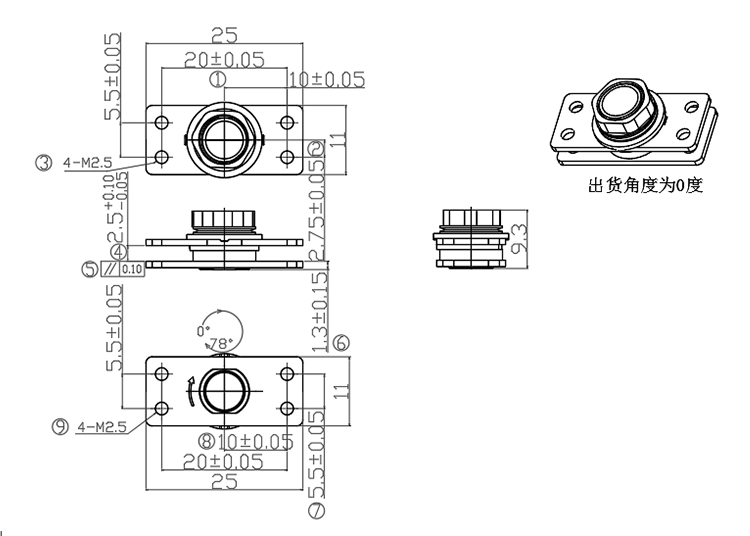 3.旋轉(zhuǎn)角度為0+/-3°-78+/-3°出貨角度0+/-3°