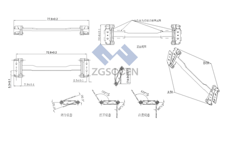 3.規(guī)格要求:A軸打開角度為122°+0/-5°