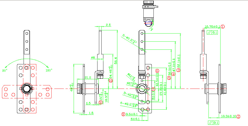 中軸旋轉(zhuǎn)角度:順轉(zhuǎn)180°±2°