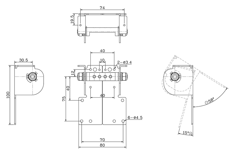 tv轉(zhuǎn)軸技術(shù)要求: 1.扭力為:單邊為28~30kgf-cm 2.壽命測(cè)試:10000次衰減率不大于20% 3.產(chǎn)品旋轉(zhuǎn)角度,前傾15±2度,后仰58±2度 4.出貨角度為0度,如圖所示 5.產(chǎn)品所有加工工藝需符合環(huán)保要求 6.所有孔距尺寸公差為±0.2 |