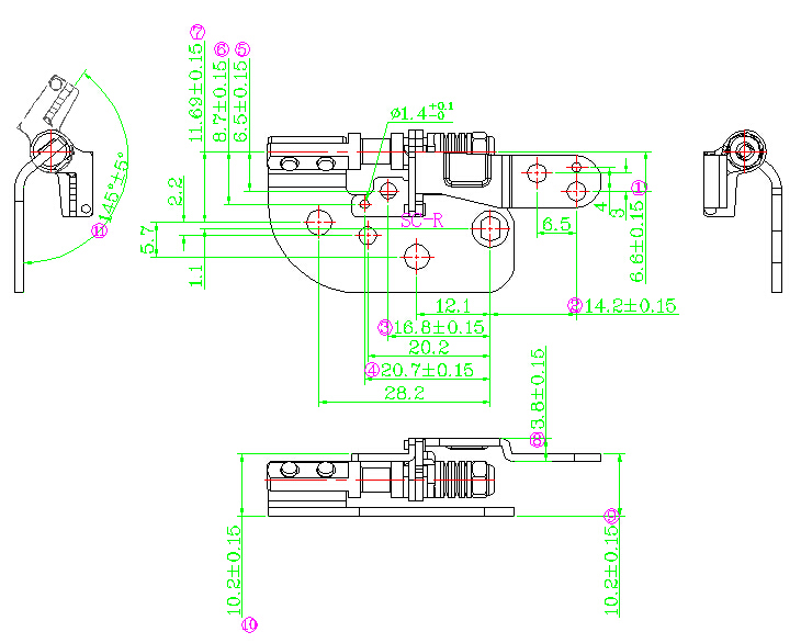 筆記本轉軸技術要求: 1.產品表面(含孔)不能有毛刺,油污,生銹等不良現(xiàn)象 2.產品平穩(wěn)力為6.0±0.5kgf-cm 3.壽命測試1萬次,衰減率不大于20% 4.產品旋轉145±5度,預壓8度,出貨角度為145度 5.所使用材料,加工工藝需符 合ROHS規(guī)定 6.標示"*"為重點管控尺寸 |