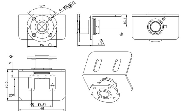 規(guī)格: 轉動角度:±90度旋轉 .出貨角度為0度(如圖示)