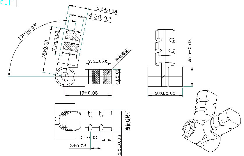 包裝盒阻尼轉(zhuǎn)軸技術(shù)要求 1、光潔無(wú)毛剌,電鍍等級(jí):48小時(shí)中性鹽霧; 2、所有材料符合歐洲ROSH環(huán)保標(biāo)準(zhǔn); 3、出廠前調(diào)整好扭力值要求2.5KGF*CM±0.3,壽命8000次以上. 4、 其它倒角均為0.1mm | |