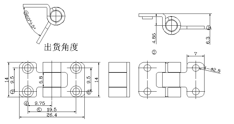 阻尼轉(zhuǎn)軸技術(shù)要求: 1.產(chǎn)品扭力為:小扭力4.0±0.3kgf.cm 2.產(chǎn)品旋轉(zhuǎn)角度360度,出貨角度如圖示60度 3.壽命測試10000次,衰減率為百分之20 4.所有工藝需符合ROSH要求 | |